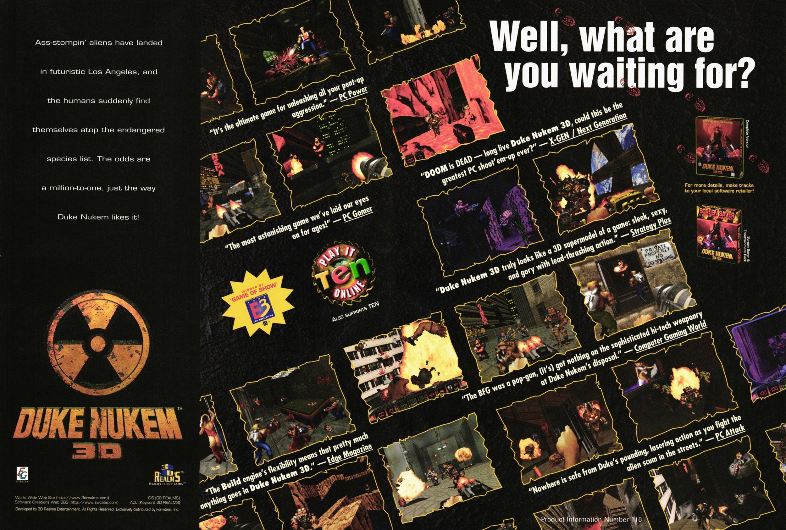 The visuals demonstrated in these games and products were possible because of the great talents of a number of incredible artists and developers. It was my pleasure to work alongside them and to direct them on these and many more products while Marketing Creative Director at Apogee and 3D Realms.
