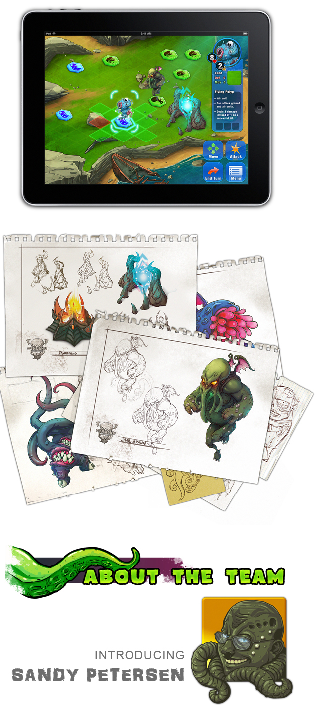 I produced Cthulhu Wars alongside designer Sandy Petersen and art director Richard Luong, uniting a shared love for H.P. Lovecraft’s mythos. Together, we launched a massively successful Kickstarter, raising over $1.4 million and ranking among the top Lovecraftian projects of its time.