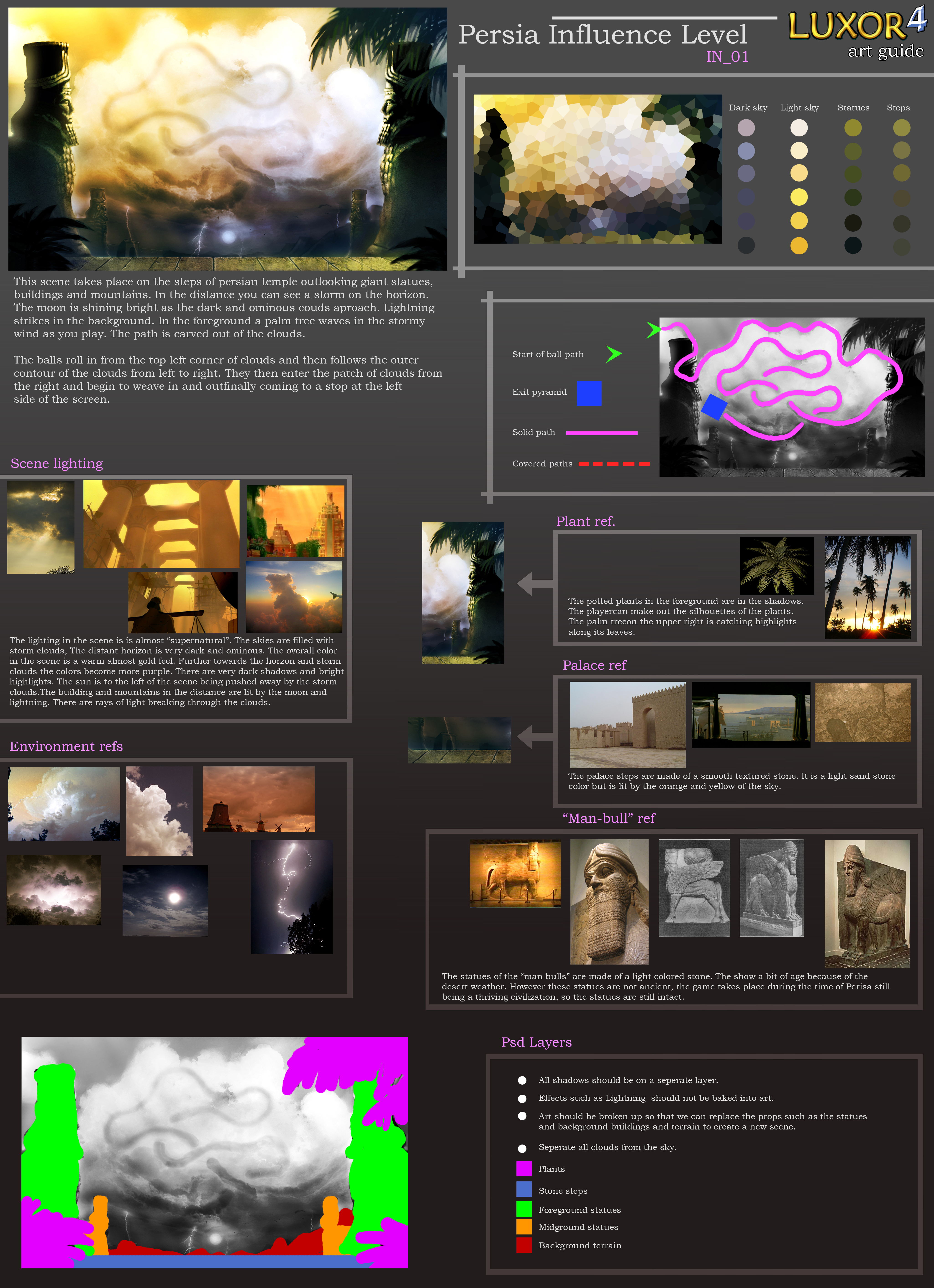 The visuals in this game were possible because of the great art talents of R. Luong (Concept Artist), A. Hausmann, K. Kane, C. Lee D. Finley and GameVision. It was an honor to lead them.